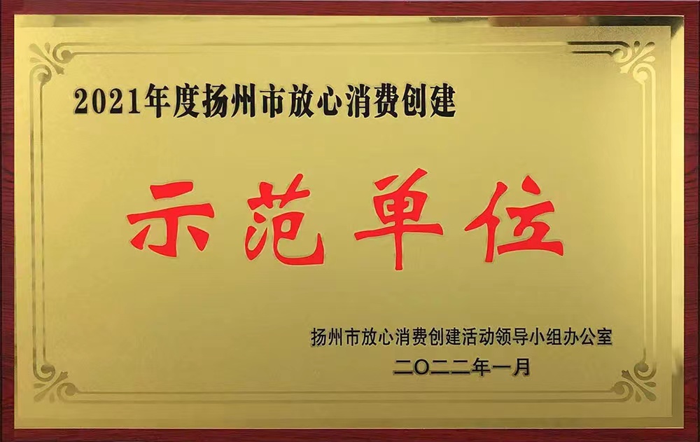 2021年度揚(yáng)州市放心消費(fèi)創(chuàng)建示范單位