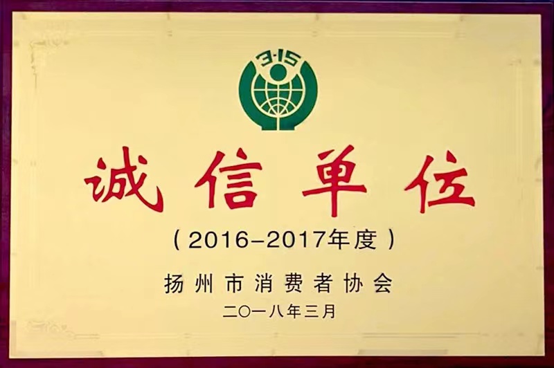 2016-2017年度揚(yáng)州市消費(fèi)者協(xié)會誠信單位