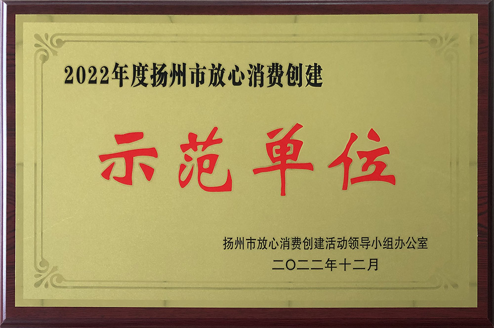2022年度揚(yáng)州市放心消費(fèi)創(chuàng)建示范單位